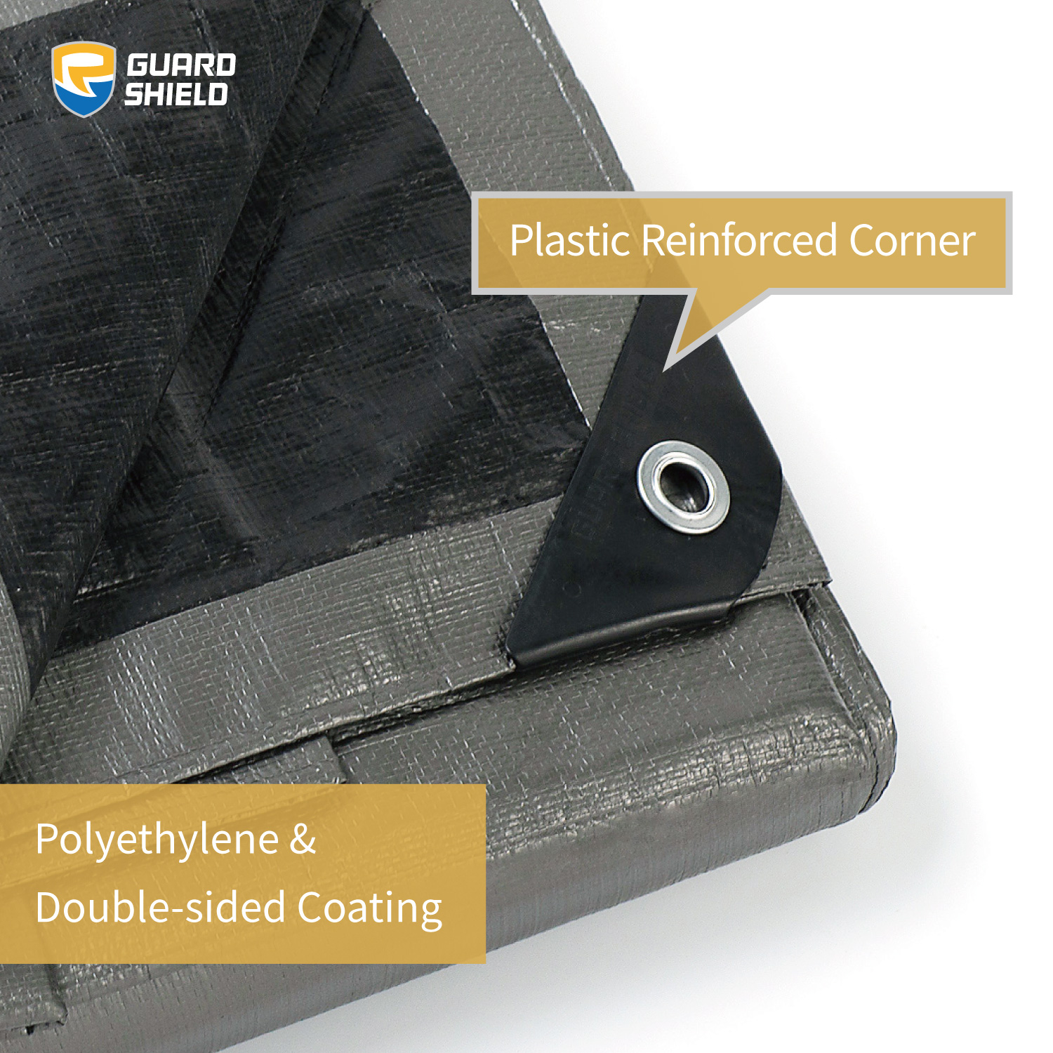 GUARD SHIELD Heavy Duty Tarp 10×20 Feet Silver/Black Multi Purpose Thick Waterproof Poly Tarp Cover 10mil