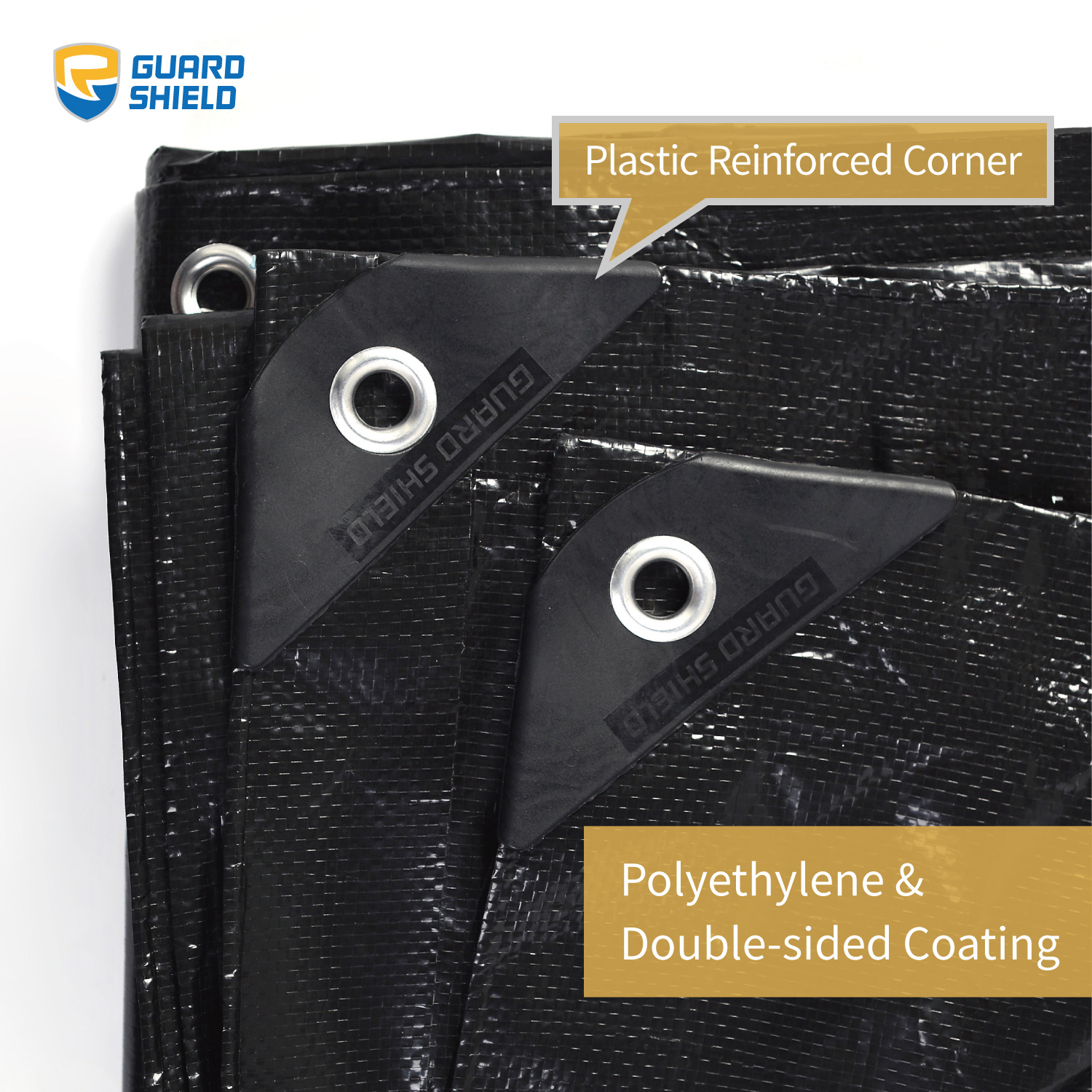 GUARD SHIELD Black Tarp Waterproof 12×20 Feet Medium Duty All Purpose Poly Tarps Cover 7mil