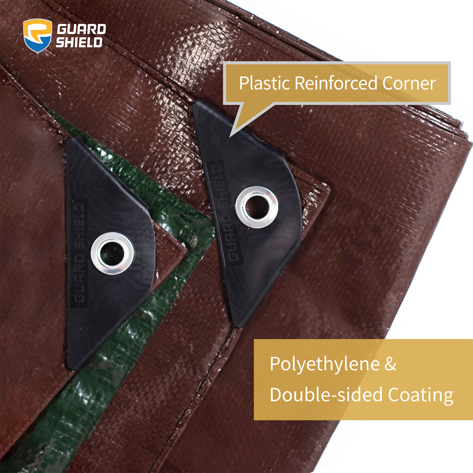GUARD SHIELD Brown/Green Tarp 12×14 Feet Medium Duty Outdoor Waterproof Multi Purpose Poly Tarps Cover 7mil