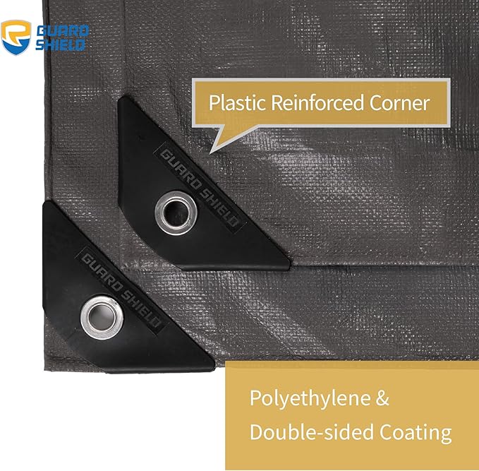GUARD SHIELD Tarps Heavy Duty Plus+ Waterproof 10×20 Feet Black Multi-Purpose Thick Poly Tarp Cover 12mil